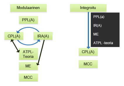 Liikennelentäjäkoulutus on mahdollista suorittaa integroidusti, modulaarisesti tai MPL (MultiPilot License) tyyppisesti.